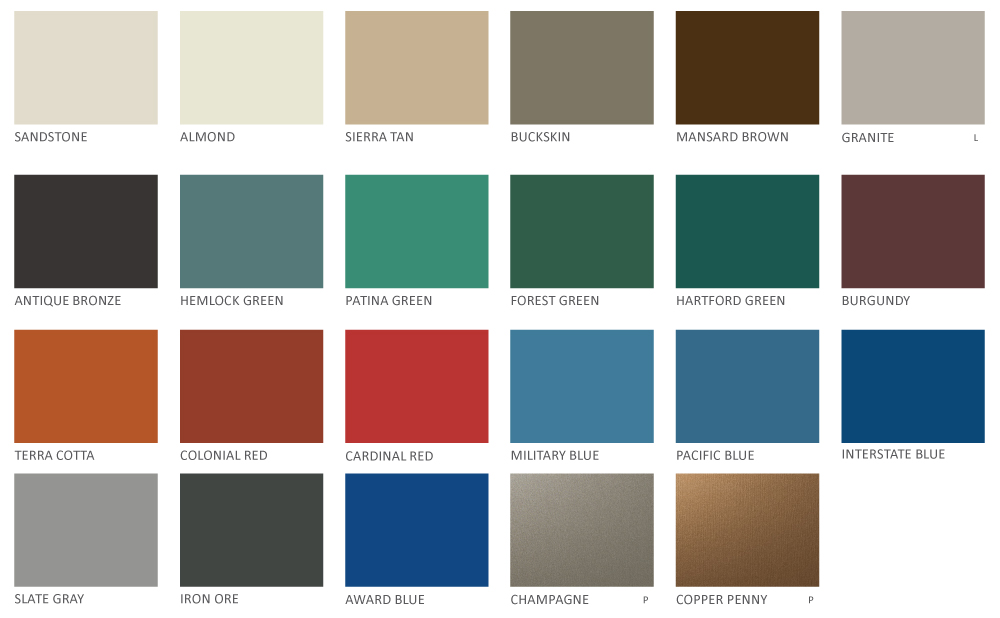 *NOTE: Colors shown are not exact representations of the final color. Ask your New Castle Metal representative for metal color chip samples before making a final color selection.